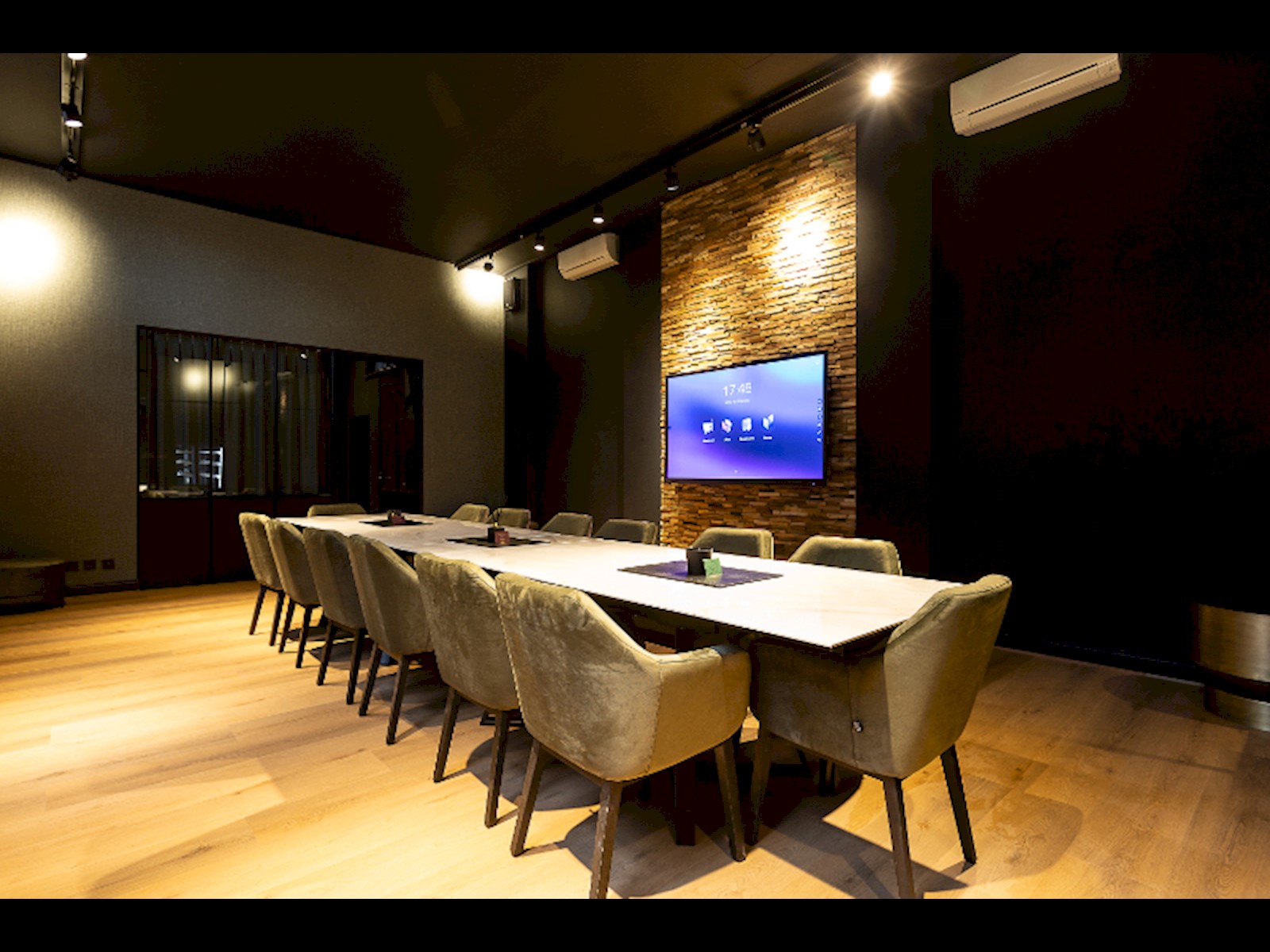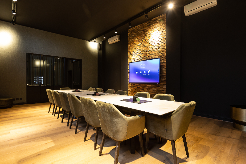 De gelijkvloers is ingedeeld met een grote boardroom en aparte vergaderzalen/belbubbels alsook sanitair en een bar- en eventruimte met aansluitend een groot terras. De verdiepingen zijn identiek ingedeeld en bieden mogelijkheid tot open space of aparte kantoorruimtes.